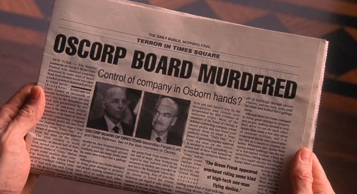 The second station isn't for science, but microfiche: it runs through scans of articles from a newspaper called The Daily Bugle. There are two of note: one about the history of Oscorp Industries and its founder, and the other concerning the grisly fate of its board of directors. There's also a coffee mug at hand with an MIT logo, half on top of a post-it which reads "Send Jonah More Cubans" in neat block handwriting.